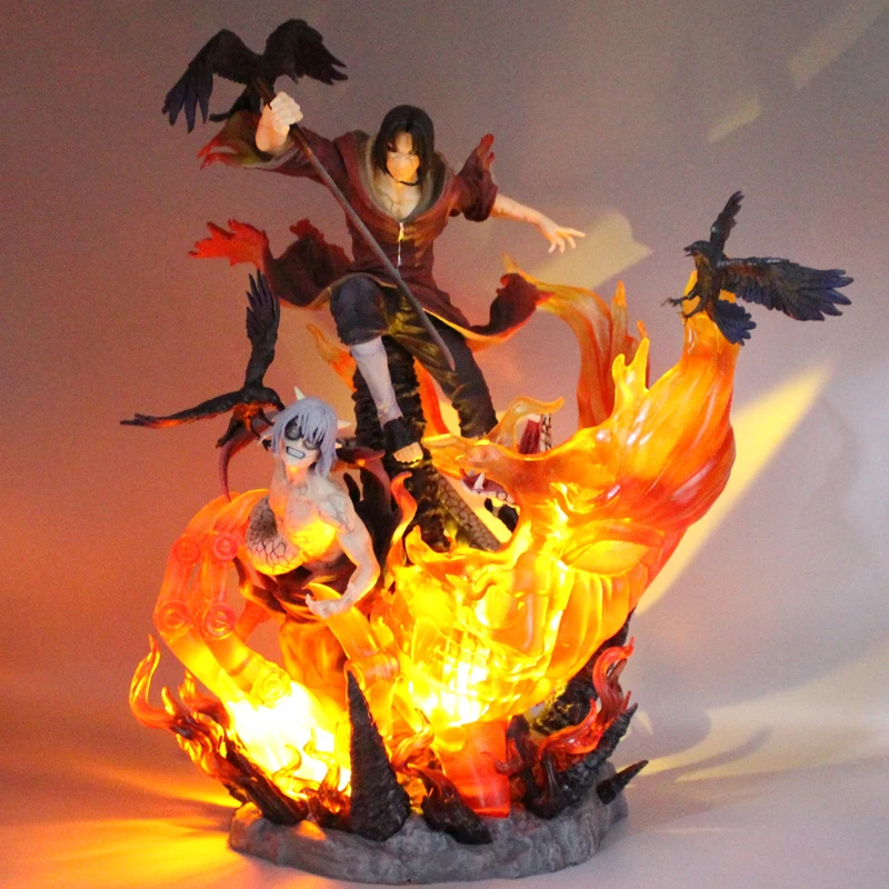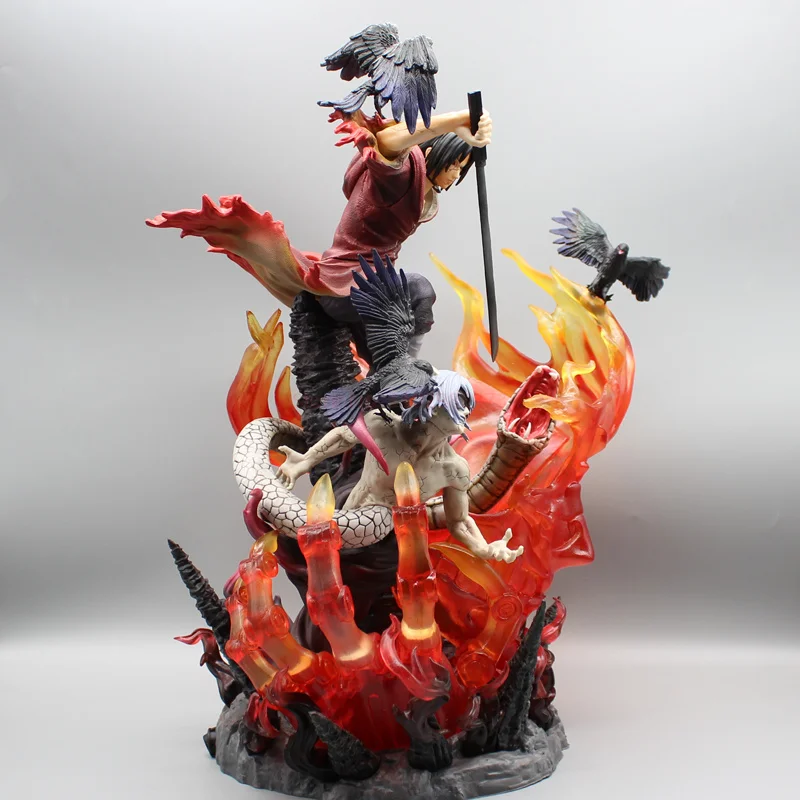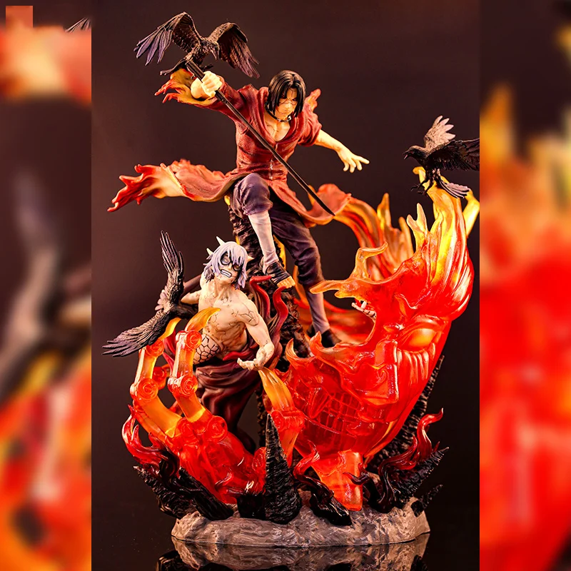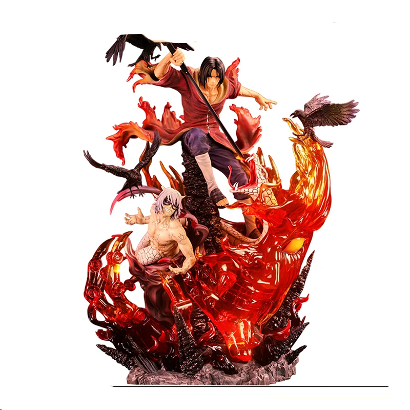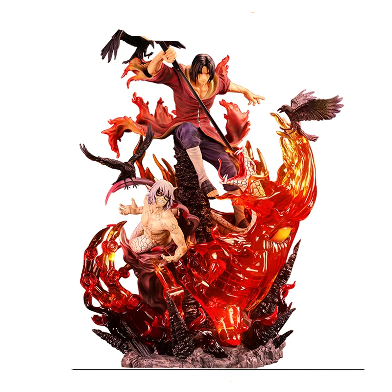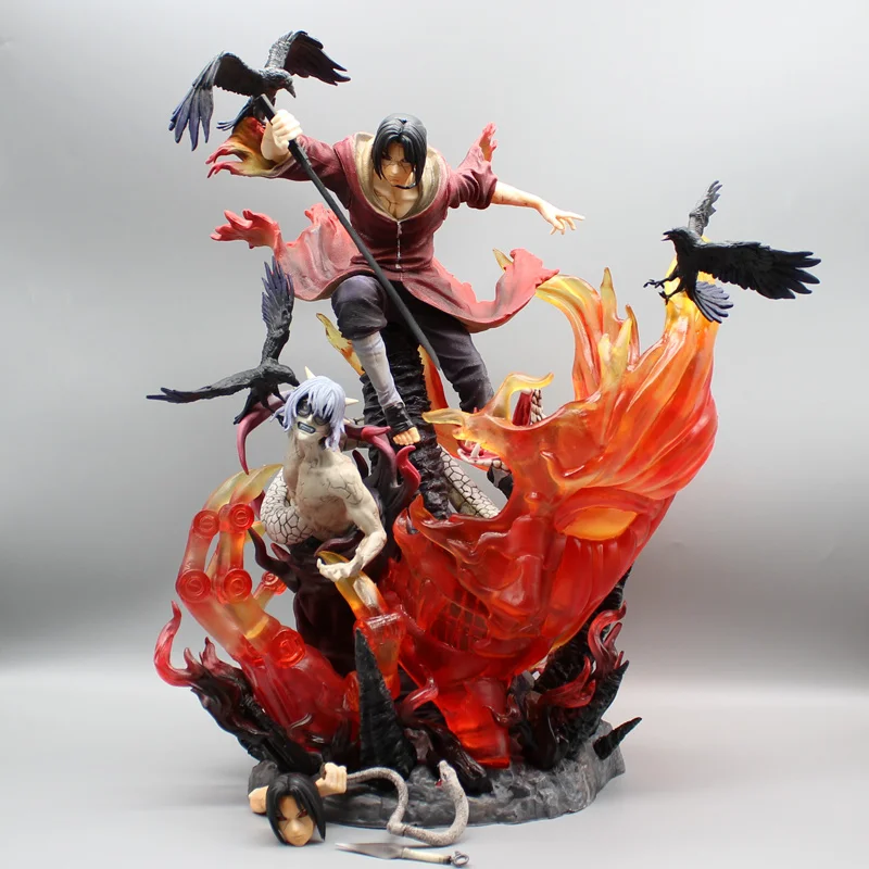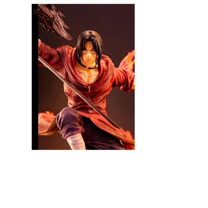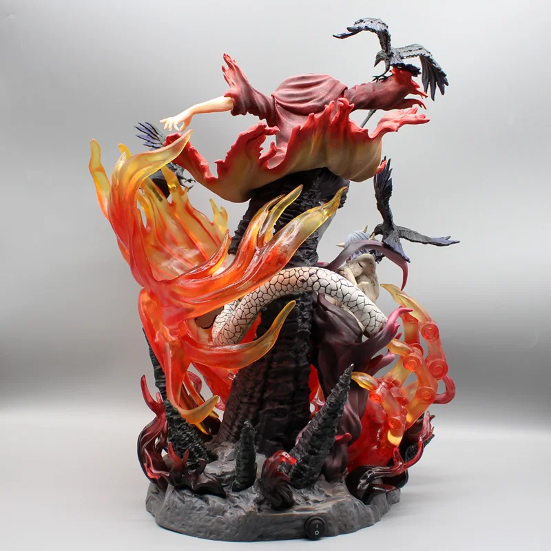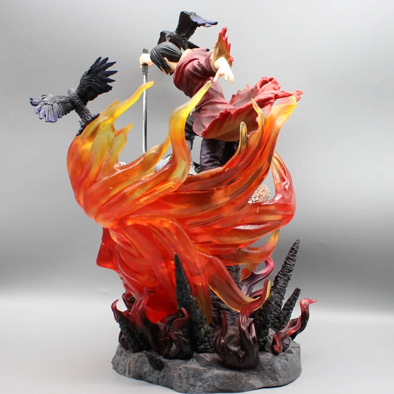 Cette statue Naruto Itachi rouge, regardée de face ou de dos, procurera des émotions aux aficionados de la série et des films : elle contient tant de détails précis parfaitement reproduits comme les corbeaux qu'il attire, les boules de feu qu'il a appris à dompter dès son enfance, les détails de son costume et de ses cheveux.