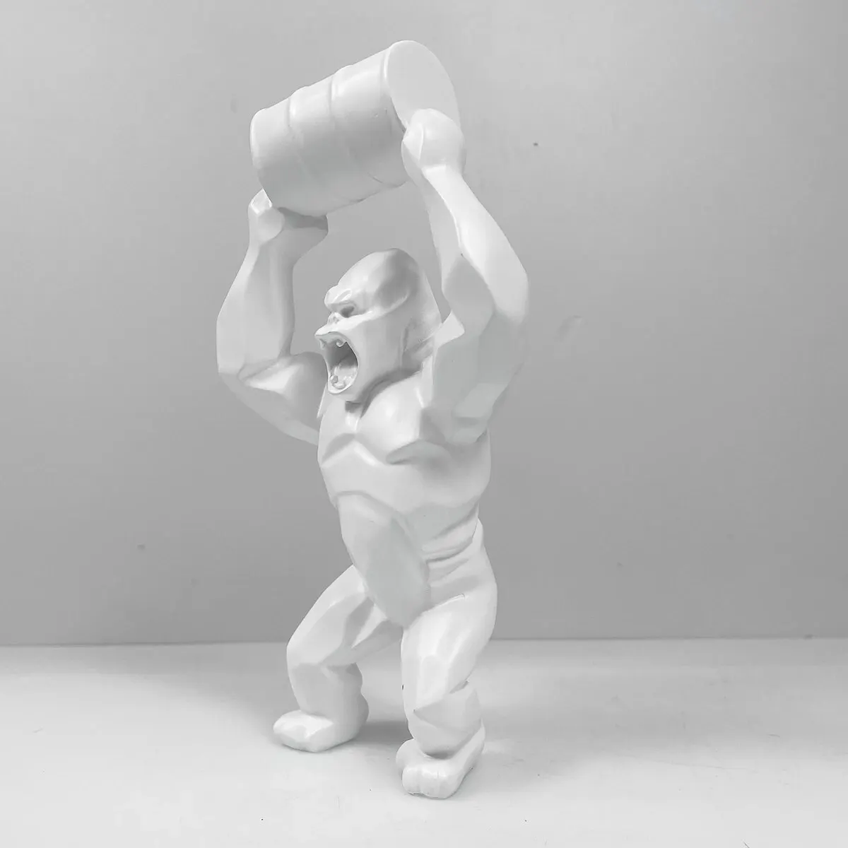 Fabriquรฉe ร partir de rรฉsine de qualitรฉ, cette statue est conรงue pour rรฉsister ร l'รฉpreuve du temps. Sa finition lisse et durable garantit qu'elle restera รฉclatante de nombreuses annรฉes ร venir. Les couleurs unies utilisรฉes pour peindre cette statue sont intenses et intemporelles, ce qui lui confรจre une prรฉsence visuelle remarquable dans n'importe quel espace. Ce gorille porte au dessus de sa tรชte un tonneau, et semble crier ce qui lui donne une posture agrรฉssive.