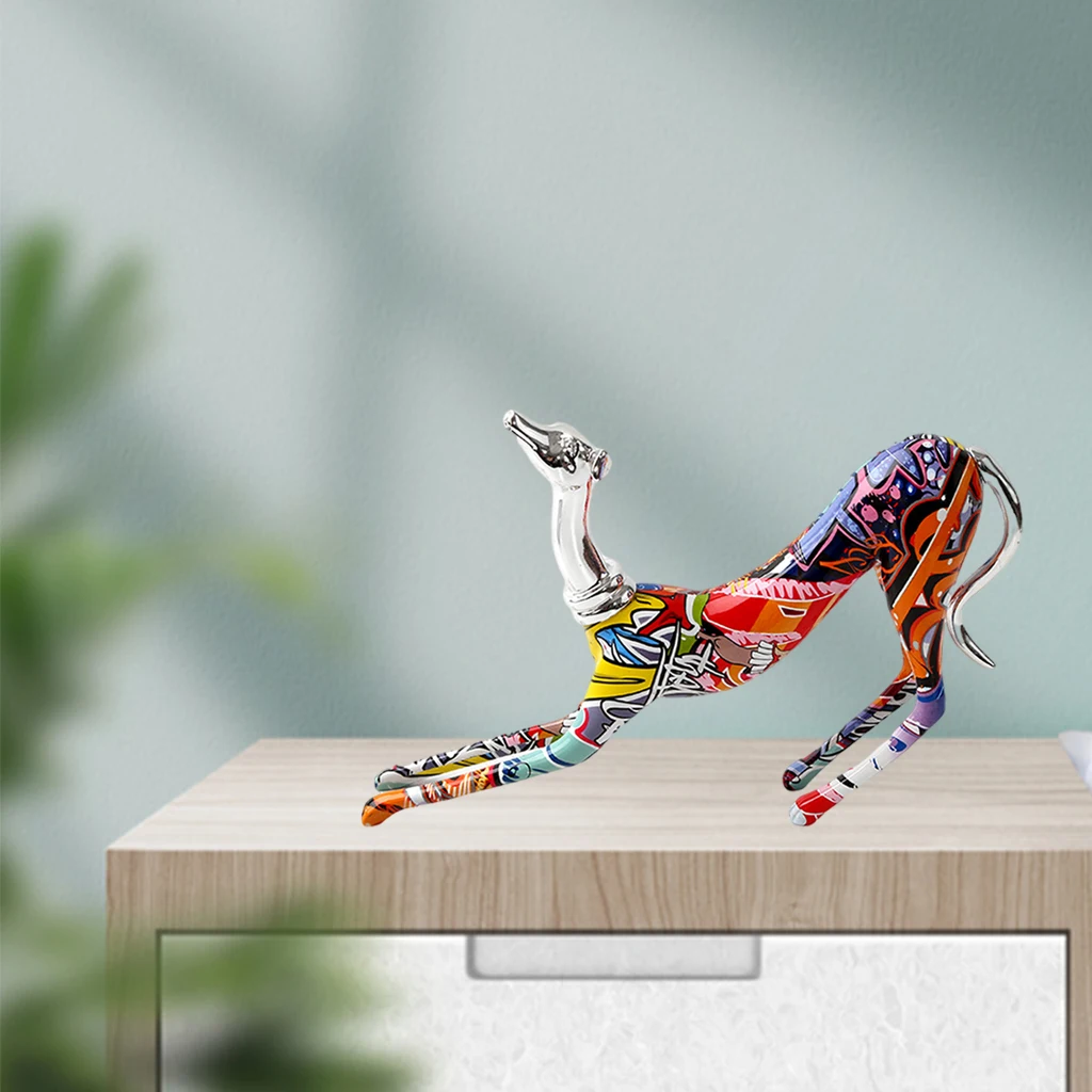 Les détails minutieux de chaque courbe du corps de ce lévrier sont rendus avec une précision exceptionnelle, créant ainsi une impression de réalisme saisissante. Cela donne à cette statue de lévrier multicolore une apparence vivante. Les couleurs vives et vibrantes ajoutent une dimension supplémentaire à son attrait visuel. Qu'attendez-vous pour l'intégrer à votre espace de vie ?