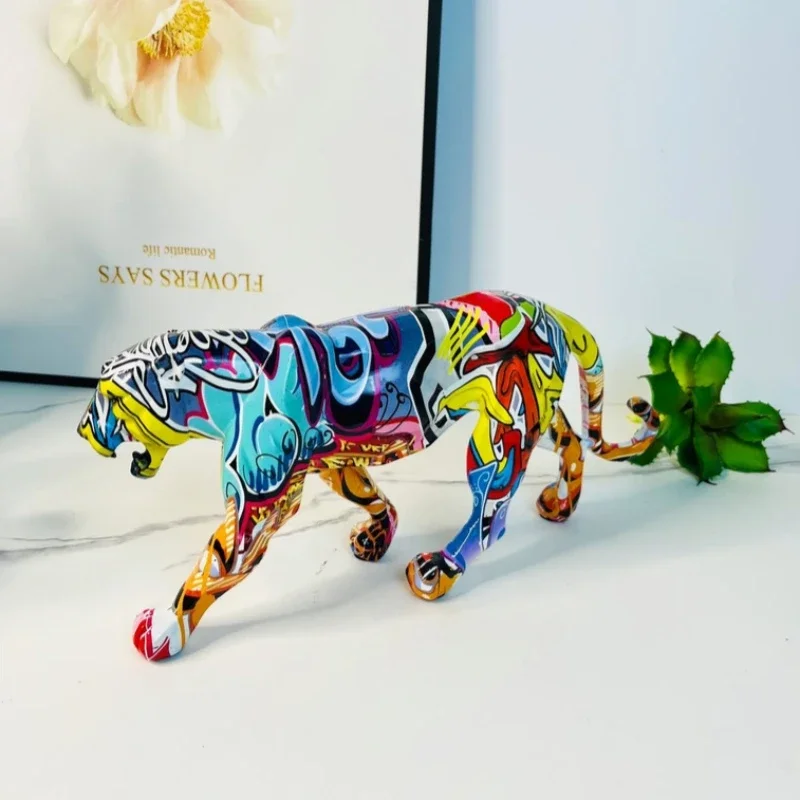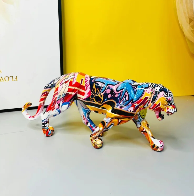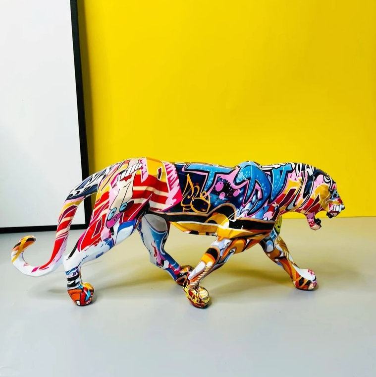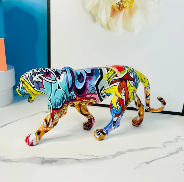 Statue de panthère colorée style graffiti