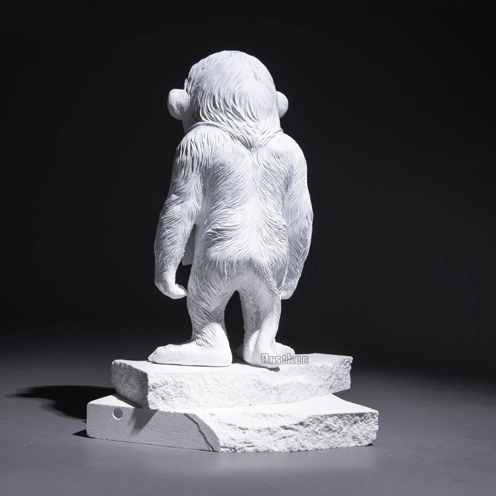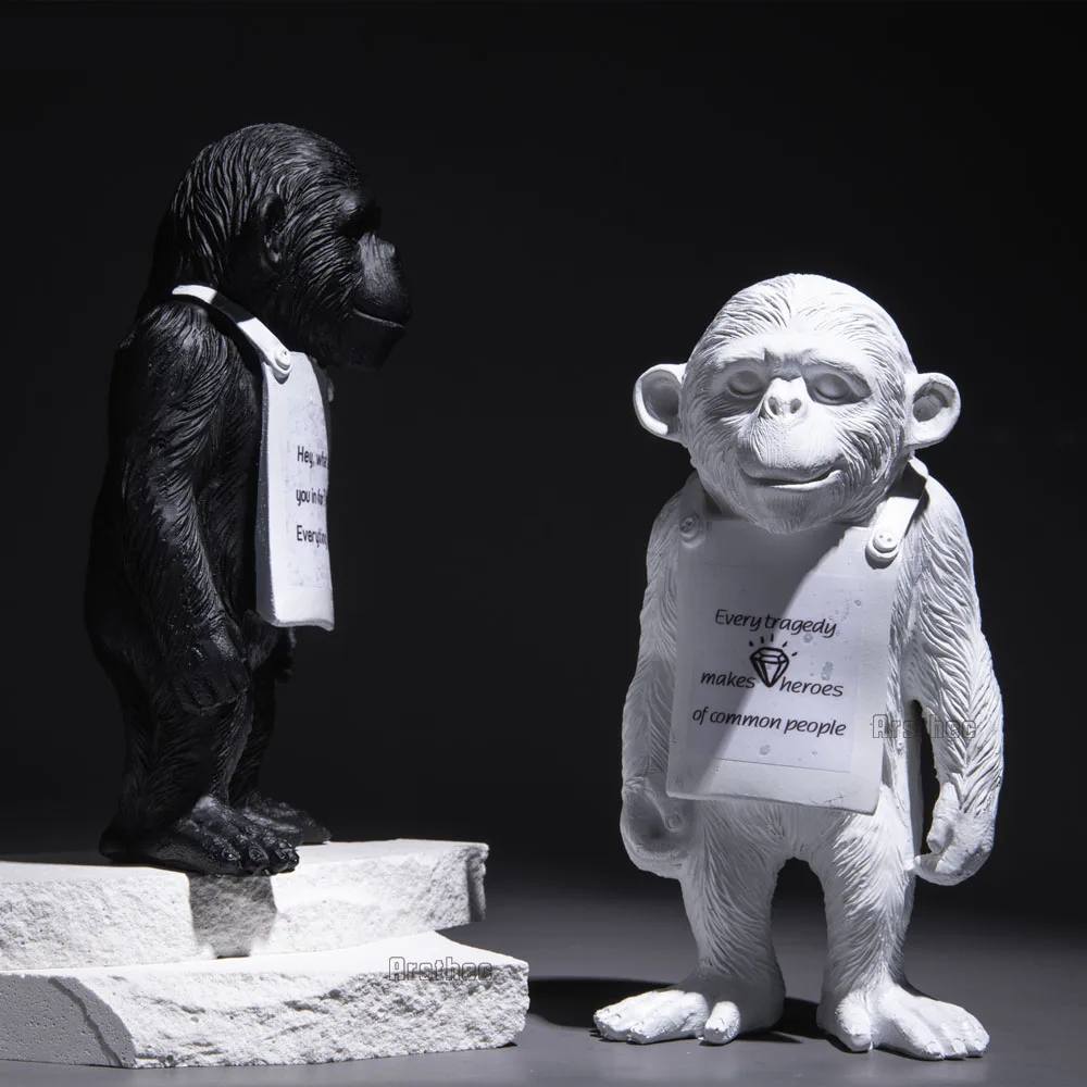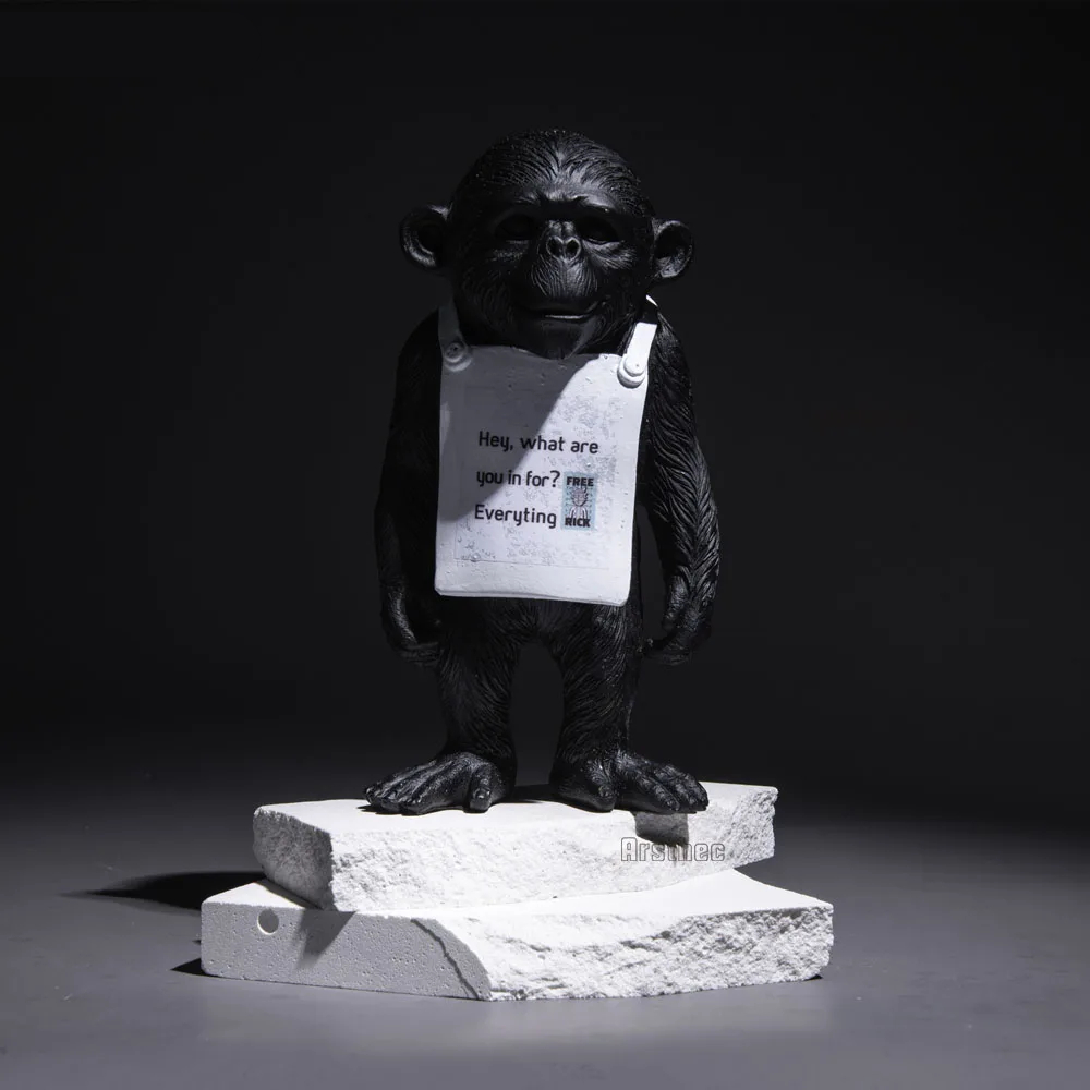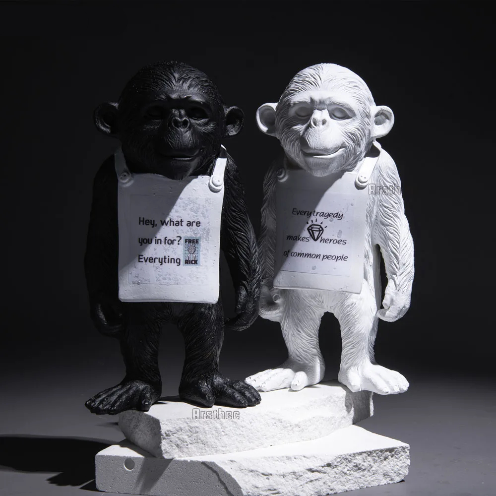 Notre statue moderne de singe est conçue pour évoquer l’émerveillement et l’étonnement, tout en offrant une interprétation artistique audacieuse de la nature sauvage. Elle représente un singe avec une feuille de papier autour du cou, pouvant transmettre un message. Disponible en noir et en blanc, faîtes votre choix.