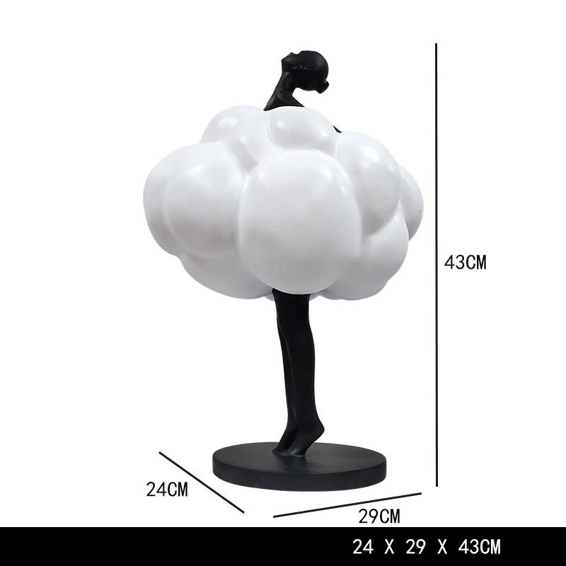 Cette statue contemporaine de danseuse nuage est bien originale avec son gros nuage comme des boules de coton et elle allie avec bonheur l'élégance de cette ballerine toute jeune. C'est le genre d'objet décoratif qui plaira aux amoureux de la danse mais aussi à ceux qui veulent ajouter un certain raffinement à leur décor.