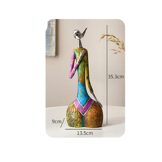 Cette statue contemporaine de femme en résine est composé dans un matériau de qualité résistant aux rayons UV et donc à l'épreuve du temps pour les couleurs : c'est parfait pour cette statue aux couleurs chatoyantes qui représentent ses vêtements, dans un style africain modernisé également. La finesse de cette statue à la pose gracieuse lui donne une élégance certaine.