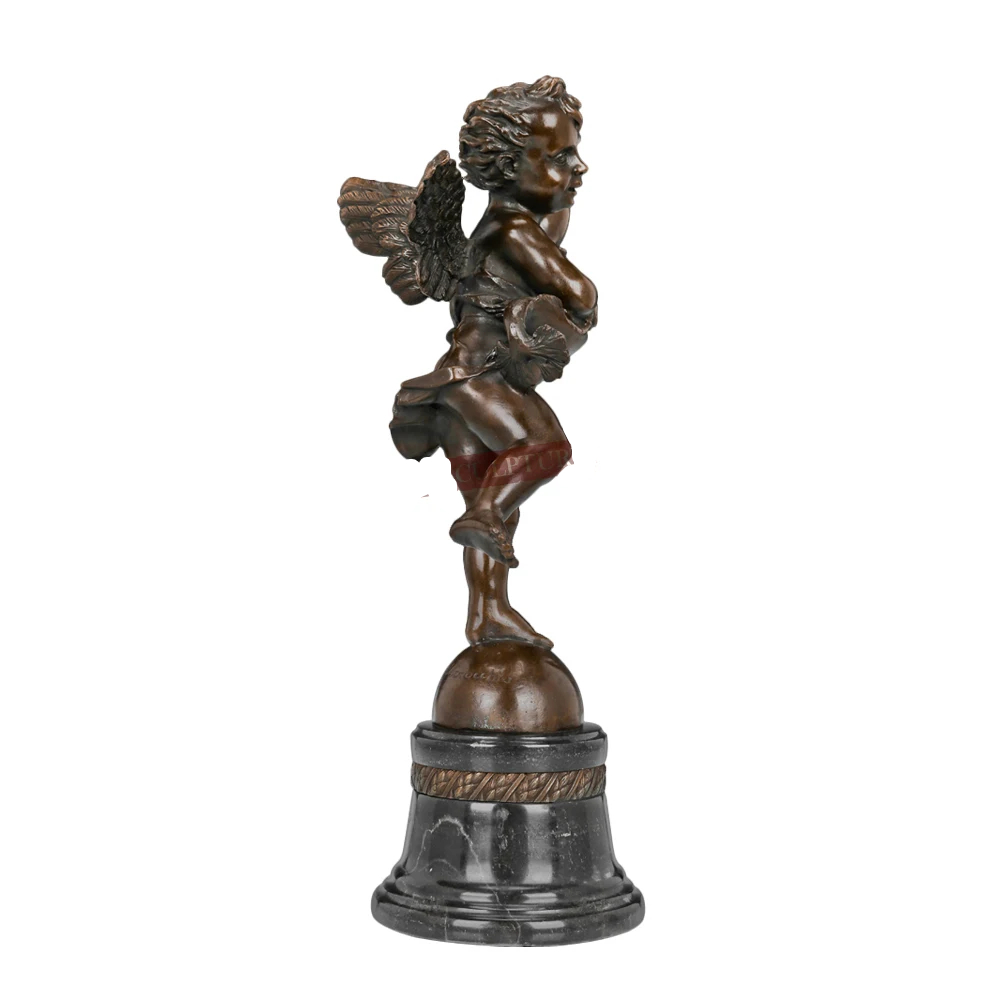 Fabriquée en bronze de qualité, cette statue est le fruit d'un travail minutieux et méticuleux. Chaque courbe du corps de Cupidon est soigneusement sculptée, mettant en valeur sa silhouette élégante et gracieuse. Les traits délicats de son visage reflètent la douceur et la pureté de l'amour, tandis que ses ailes déployées symbolisent la liberté et la légèreté.