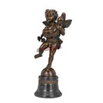 Statue Cupidon avec dauphin en bronze