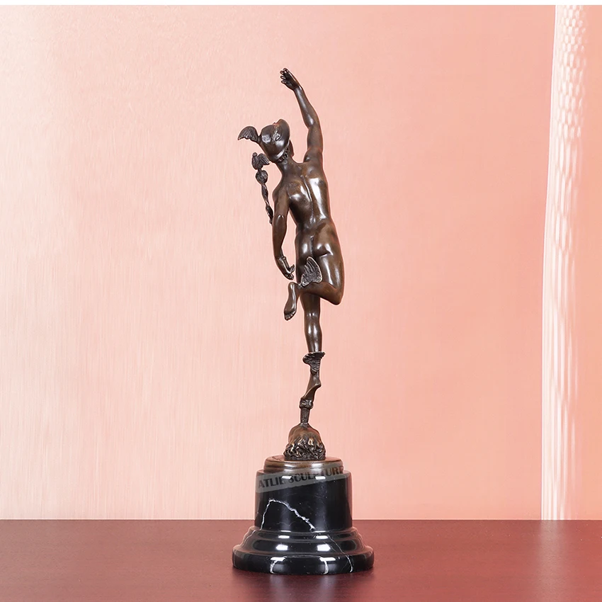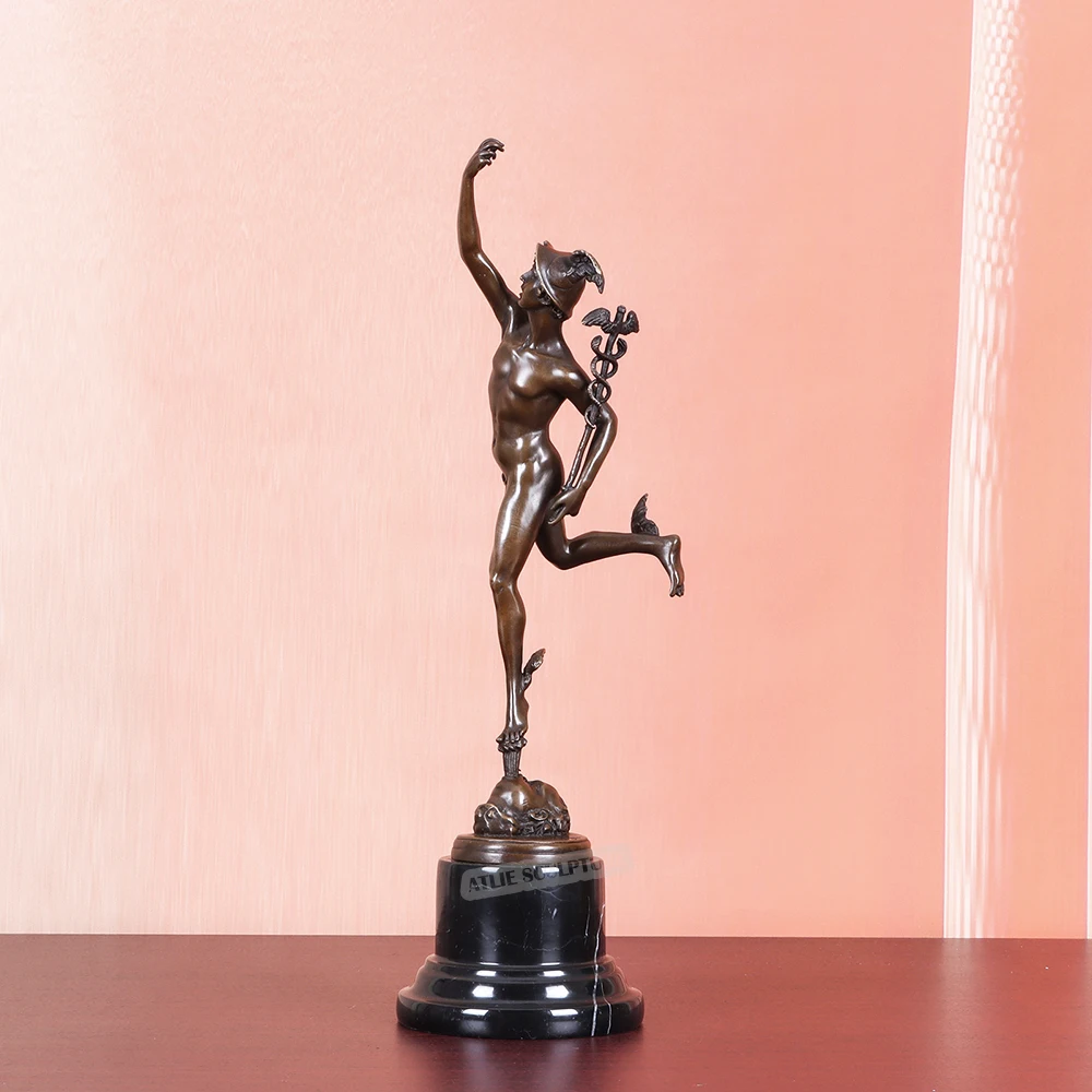 Cette statue d'Hermès nu en bronze est une oeuvre d'une grande finesse dans tous les sens du terme : elle est physiquement très fine et les détails qui la composent sont finement sculptés. Cela lui confère une élégance sans pareille qui sera sans aucun doute un objet de décoration que vous serez fier et heureux de faire découvrir à votre entourage, tant elle est belle et représentative de ce dieu.