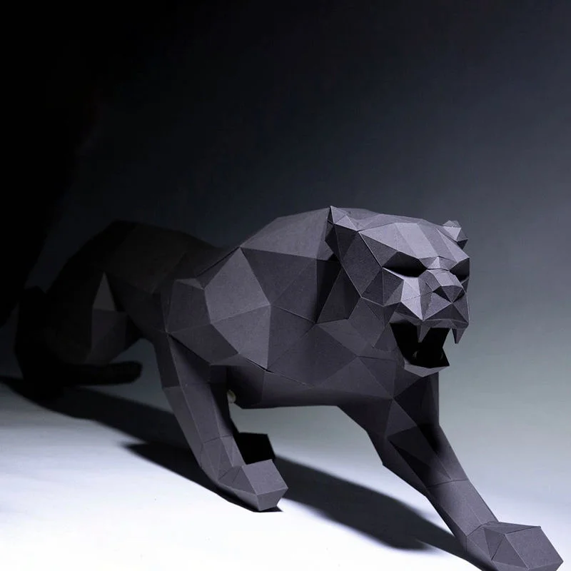 La panthère est un animal sauvage qui retranscrit votre esprit aventurier et prédateur. Cette statue origami panthère sera une œuvre qui ajoutera une touche artistique à votre intérieur en rendant hommage à la beauté majestueuse de la panthère ainsi qu'aux heures que vous aurez passer à assembler cette sculpture grâce à l'art délicat du pliage japonais.