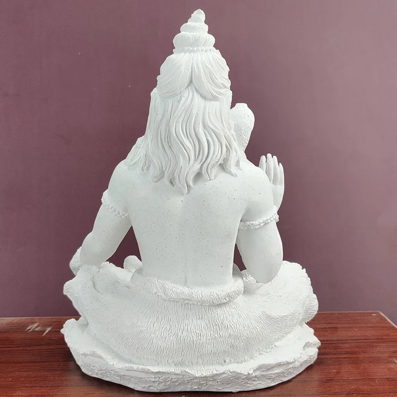 Mesurant environ 20 centimètres de hauteur, cette statue représente Shiva dans sa forme traditionnelle, assis en tailleur comme un yogi, symbole de pureté et d'éveil spirituel. Les détails minutieux de la sculpture, tels que le troisième oeil au milieu du front, symbole d'éternité et de sagesse. La couleur blanche de la résine donne à la statue une aura de sérénité et de pureté, reflétant ainsi les qualités divines associées à Shiva.
