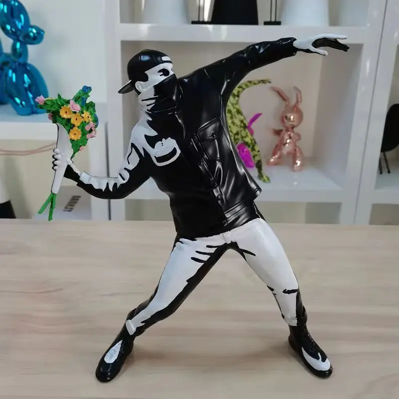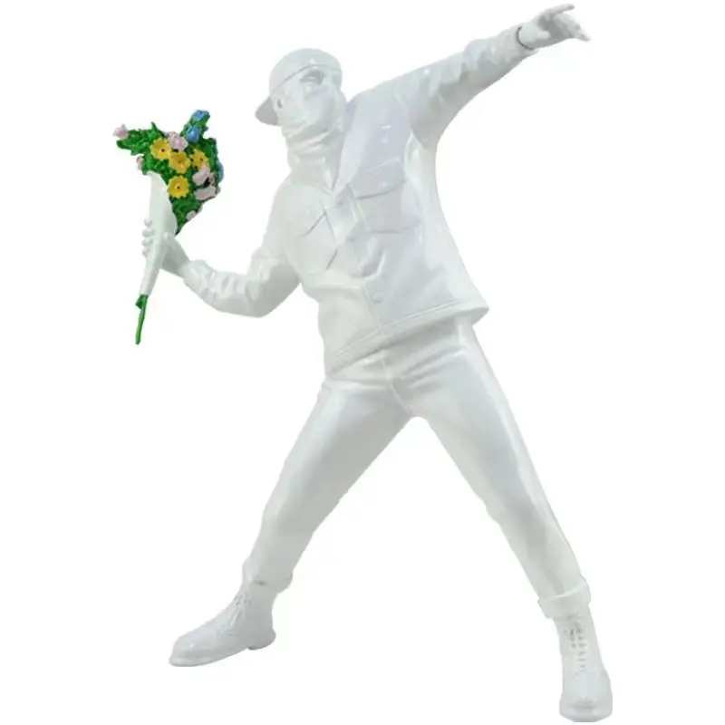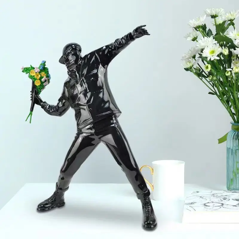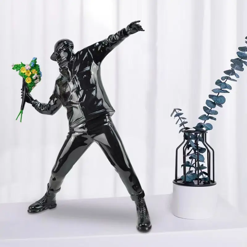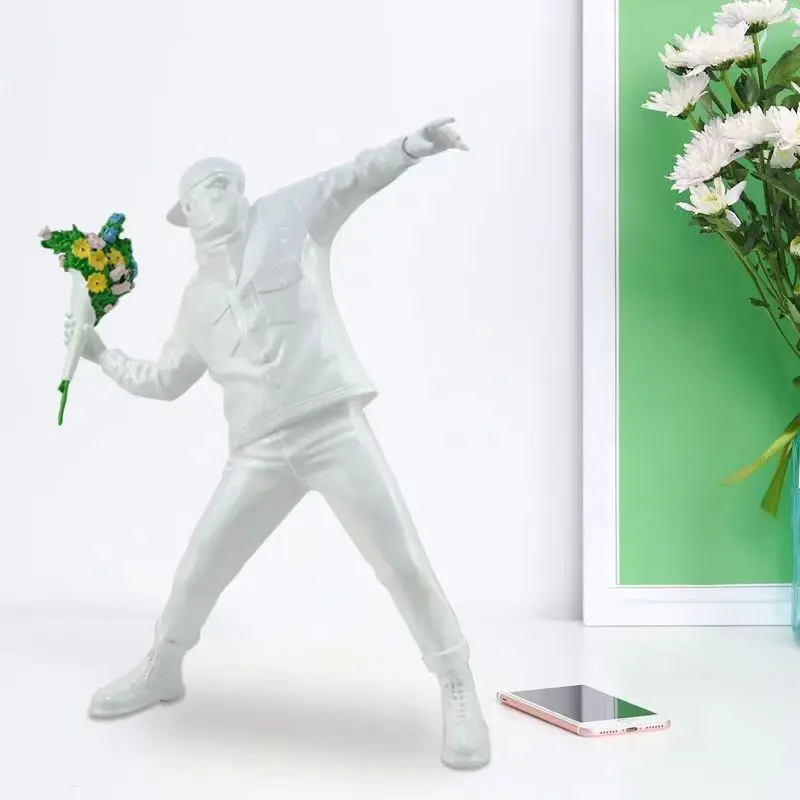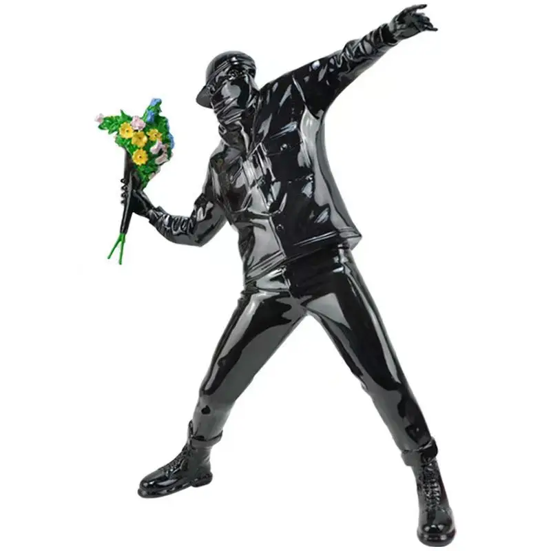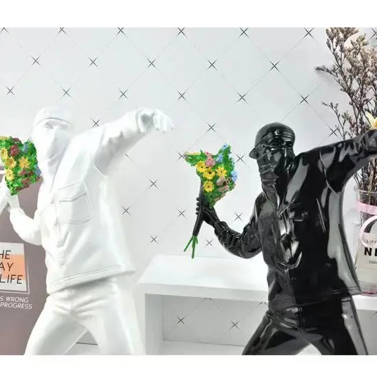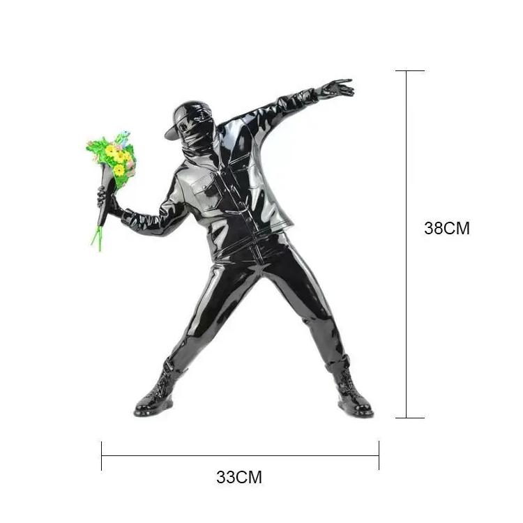 Vous connaissez sans doute cette oeuvre célèbre de l'artiste Banksy, le lanceur de fleurs qui avait été peinte sur un des murs de la ville de Bristol pour faire passer un message de paix. Reproduit en un statue superbement réalisée avec un réalisme saisissant et des détails minutieux, cette statue lanceur de fleurs ne manquera pas de susciter l'admiration et la réflexion chez ceux qui la contemplent.