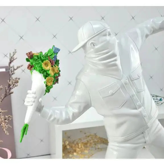 Notre statue street art Banksy lanceur de fleurs est une œuvre qui représente l'art urbain et qui saura trouver sa place dans tous les types d'intérieur. Une pièce moderne qui rappelle aux spectateurs que même dans les moments les plus sombres, il y a toujours place pour la joie. Parfaite pour être disposée dans votre salon, vous pourrez choisir cette statue parmi différentes couleurs.