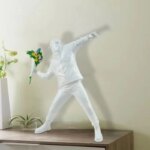 Vous êtes fan d’art de rue ? Vous allez adorer notre statue street art Banksy lanceur de fleurs. Cette oeuvre célèbre s’invite chez vous pour délivrer un message de paix et d’amour à la façon de cet artiste de street art mondialement connu.